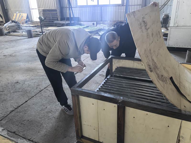 公司又一空冷器外貿(mào)訂單順利交付,客戶到工廠認(rèn)真核對(duì)尺寸和數(shù)量,得到了客戶的一致認(rèn)可