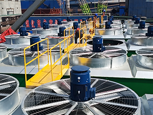 軸流風機是一種氣流方向與風機軸平行的通風設備,廣泛應用于冷卻塔,具有效率高、結構緊湊、安裝靈活的特點。工作原理為:氣流沿風機軸向進入,經旋轉葉輪加速后沿軸向排出,形成連續氣流。軸流風機由葉輪,電機和導流罩(風筒)構成。葉輪采用機翼型,通常為3~12片,材質多為鋁合金、玻璃鋼(FRP)或不銹鋼,電機采用直連型。防護等級需滿足環境要求(通常采用IP55防塵防水),風筒通常為鍍鋅鋼板或FRP材質,減少氣流渦流,提高 效率。